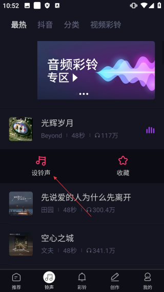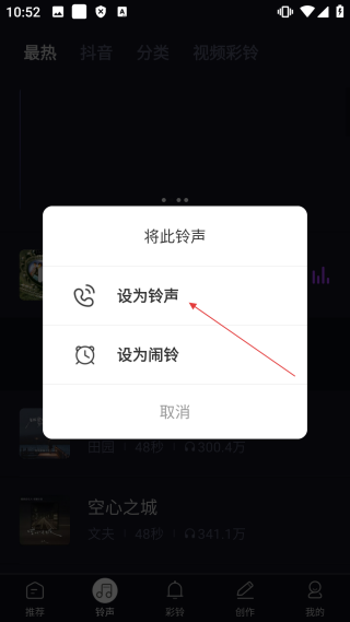 4在铃声设置方式的选择页面,点击“设为铃声”按钮,就能完成铃声的设置流程。