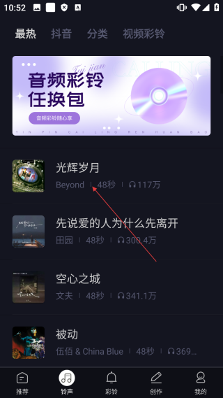 1、在首页界面,点击【铃声】,进入铃声选择界面。