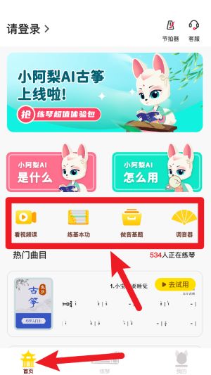 2、登录成功进入首页后,可通过点击看视频课、练基本功、做音基题等功能模块开启学习之旅。