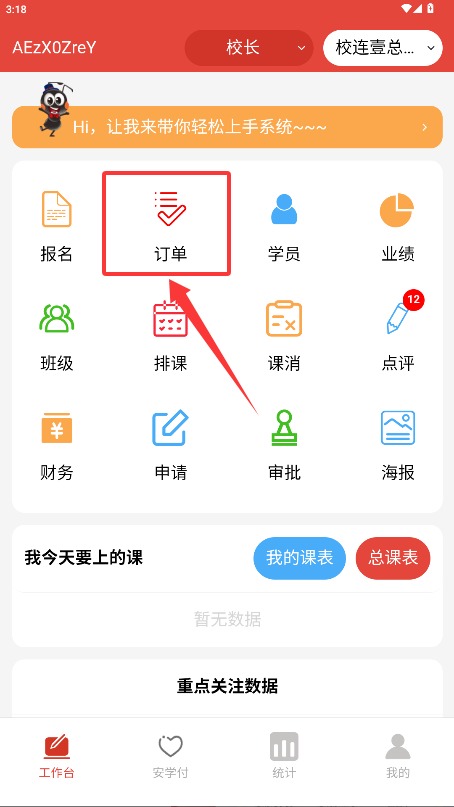 3、数据报表:系统可自动生成经营分析图表,直观呈现招生转化流程与课程消耗情况等核心业务数据。