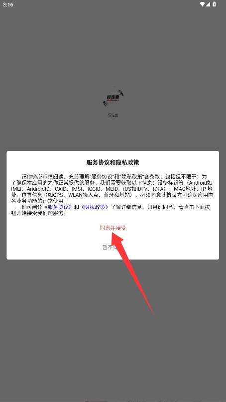 1、首次使用时,需仔细阅读用户服务协议和隐私政策,在确认无误后,点击同意并接受相关选项,即可进入应用。