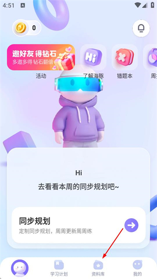 2、在资料库界面点击口算练习,进入口算练习界面。