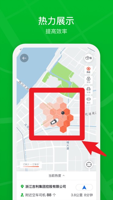 4、热力图功能可协助司机了解接单热点区域,通过合理规划行驶路线来提高接单效率。