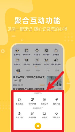 3、对互动功能区进行整合,支持发布动态、病例求助、语音识别等操作,以此实现医学交流与记录方式的多样化。