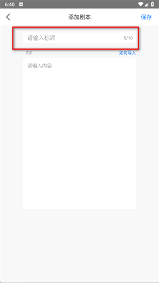 2、进入添加剧本页面,在输入框中,输入剧本标题。