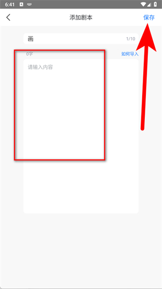 3在页面下方的输入框中填写剧本相关内容后,点击右上角的保存按钮即可完成操作。