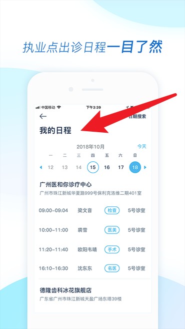 3、排班管理:全面展示不同执业地点的出诊时间安排。