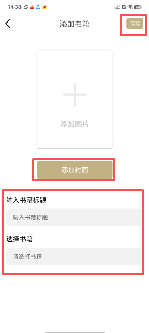 2、点击“+”,编辑导入书籍相关信息并点击“保存”即可。