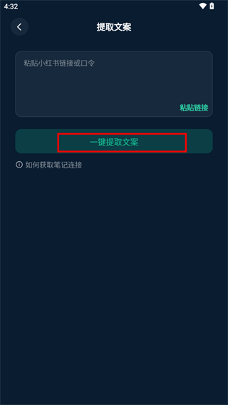 进入首页后,找到并点击“文案提取”功能按钮,接着把需要提取的文案链接复制粘贴进去,最后点击“一键提取文案”按钮就完成了。