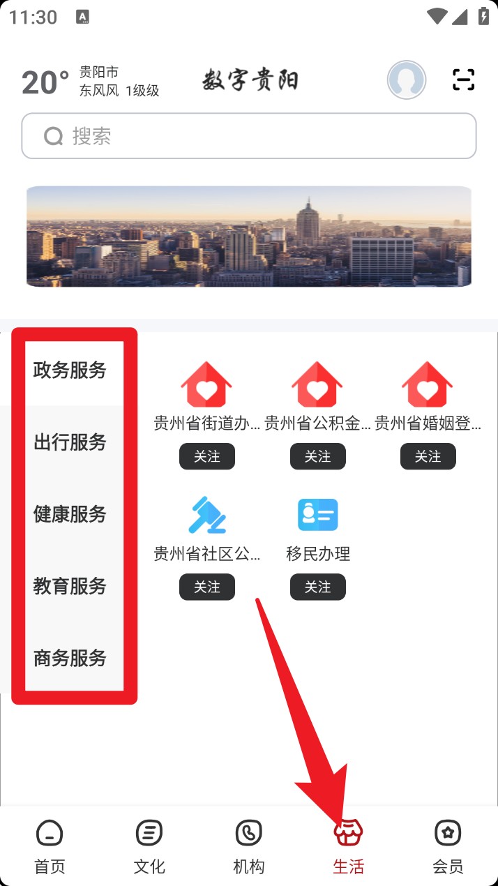 4. 进入生活频道,可根据类别快速办理政务服务、健康服务、教育事项与交通出行相关需求。