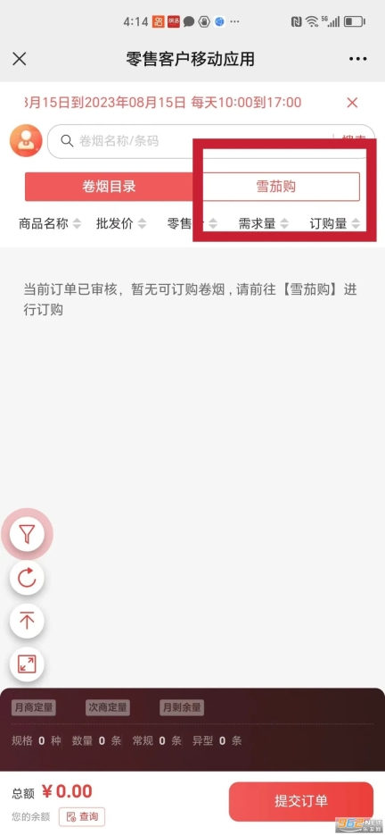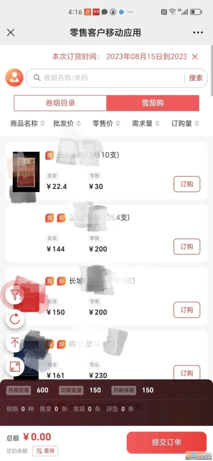 订货。新的订货平台将雪茄烟与常规卷烟的订购渠道分开,雪茄烟的订货界面展示如下