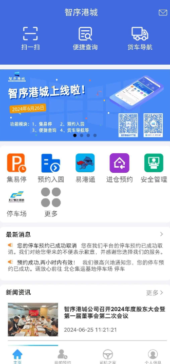 智序港城支持在线预约入园服务,货车进入仓库可直接通过预约办理。平台设有“司机家”专区,为司机提供停车、生活起居等便利,助力司机更便捷地使用各项服务功能。在该软件内,司机能够提前预订停车位,有效节省时间与成本;还能快速查找周边停车场,系统会提供精准导航,引导司机直达停车场,避免绕路。此外,平台致力于打造司机之家,方便司机随时交流互动、共享资源。