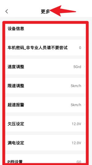 3、通过更多菜单,能够对速度、限速、电压报警等参数进行精细化设置,从而确保行驶过程更安全、更稳定。