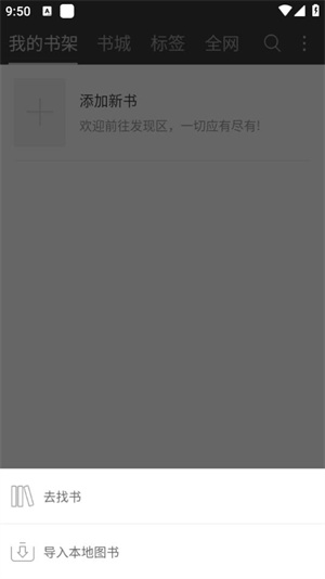 2、要是你的书架上还没有任何电子书,不妨通过添加新书的途径来获取电子书资源。