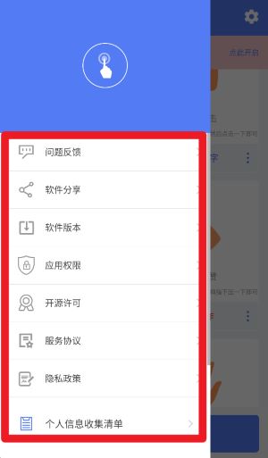 2、点击左上角菜单图标可以打开功能菜单,包括问题反馈、版本查看与权限设置等多项操作选项。