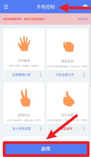 1、在主界面点击启用按钮前,请确保已开启必要权限,否则软件将无法正常识别手势动作。