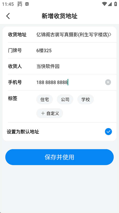 7、首次登录的用户需先添加收货地址,填写相关信息后点击“保存并使用”按钮。