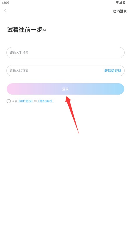 2、在登录页面填写手机号码和验证码,勾选同意相关条款后点击登录按钮完成验证。