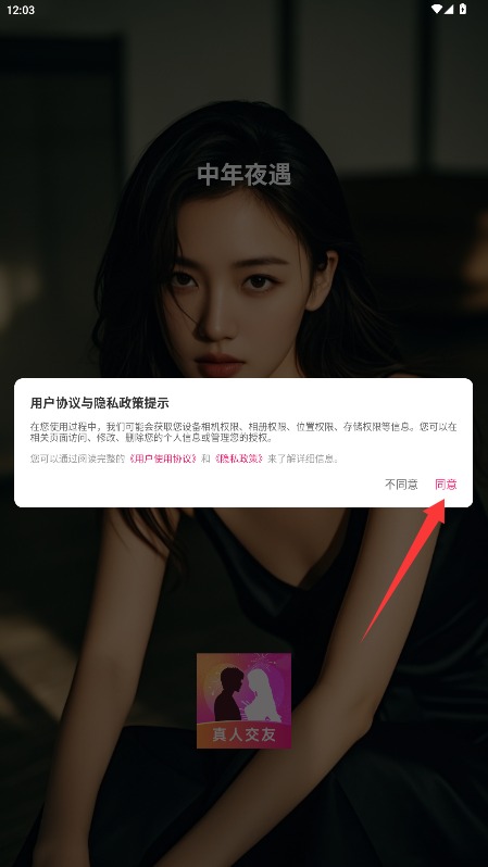 1、初次使用需阅读平台服务条款与隐私政策,确认后点击同意按钮进入应用。