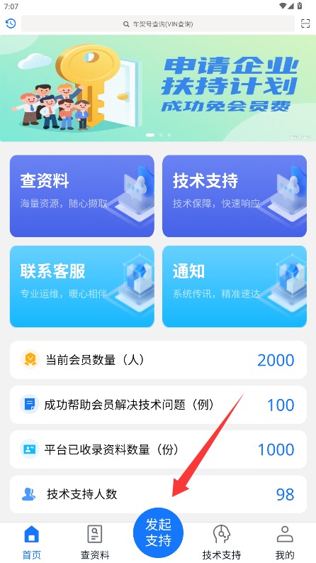 3、进入应用后点击底部导航栏的发起支持按钮,开始创建新的维修服务工单。