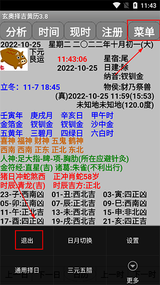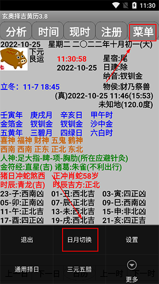4、一天24小时的吉方、吉凶情况、时辰杂占。