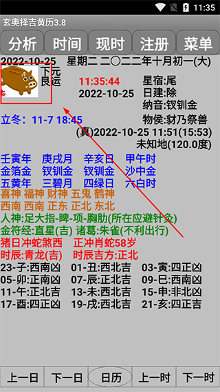 2、二十四小时内的吉祥时辰或倒霉时辰,也能让人直接知晓当天的时间情况。