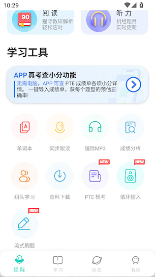 PTE猩际作为一款服务于学术英语考试备考的应用,其内容全面覆盖了听、说、读、写四大核心模块。它为学习者提供了丰富的练习题、逼真的模拟测试以及详尽的题目解析,能够满足不同英语水平学习者的需求。借助系统化的训练规划和即时反馈功能,这款应用可以助力使用者更好地熟悉考试的整个流程,有效提升应对考试的各项技巧。