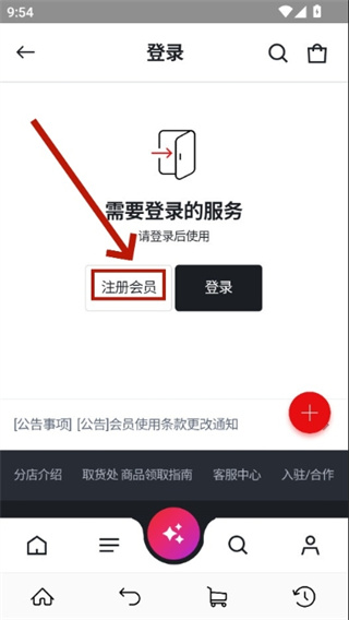 3接下来需要进入会员相关的界面,找到位于界面中央的注册入口完成会员注册。成为该软件的会员后,能够参与平台推出的各类优惠活动,享受专属折扣福利。