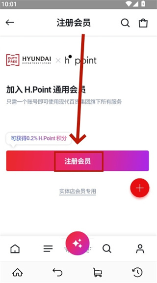 1、进入现代百货免税店或手机端,点击页面上方的“注册-注册会员”按钮,就能进入注册页面。