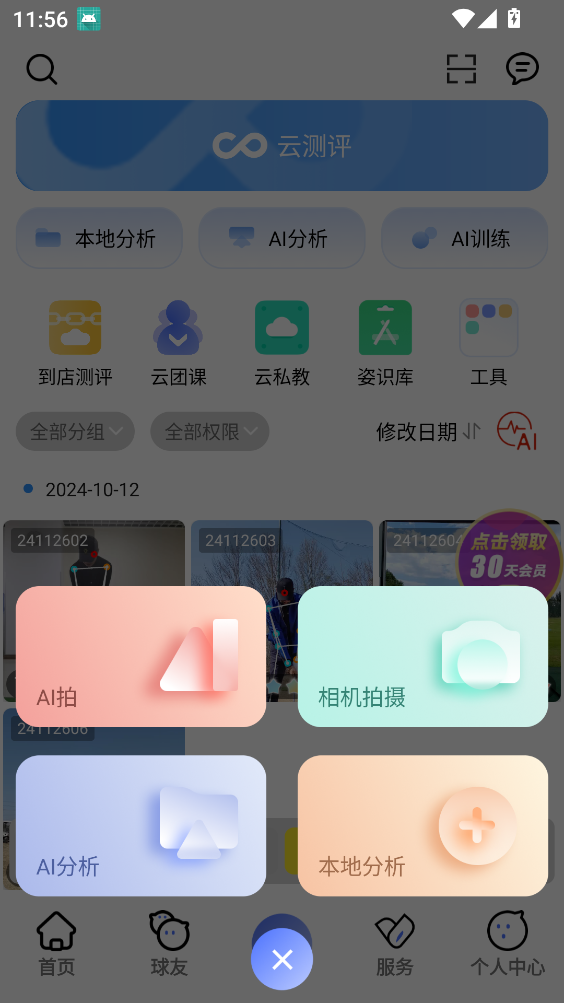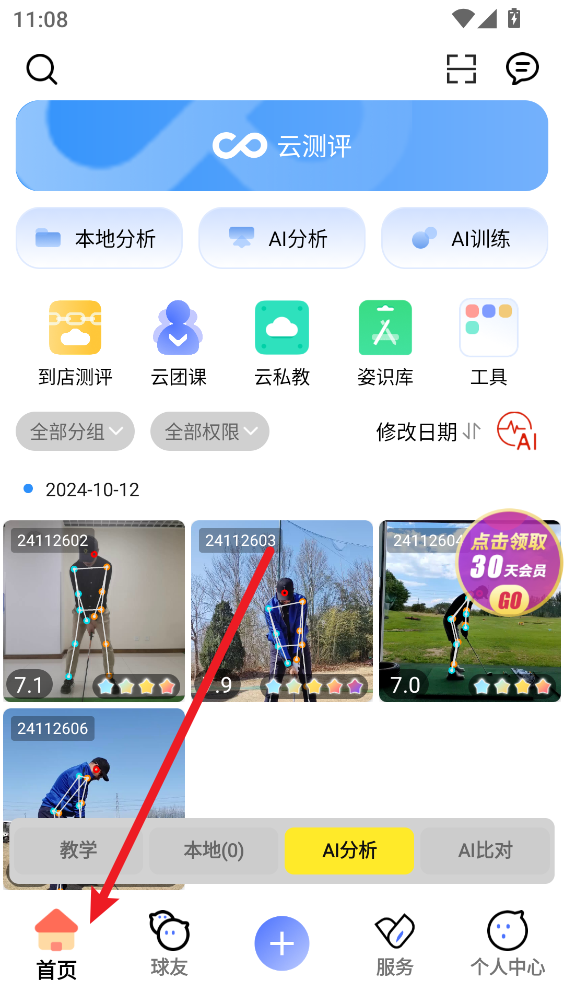 2、登录成功后,点击底部的“首页”,即可查看挥杆分析以及相关的打点记录内容。
