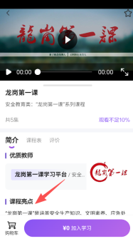 2、点击目标课程(例如龙岗第一课),查看课程亮点、简介等相关详情。