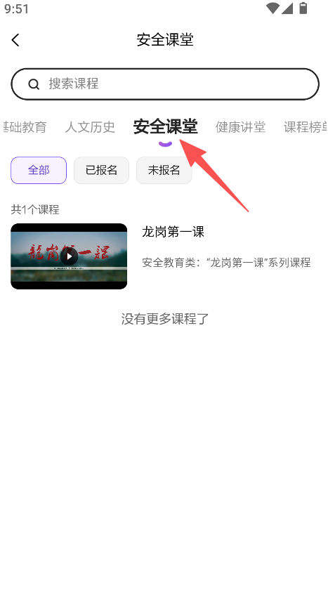1打开学习区域,找到安全课堂的分类选项,浏览其中的课程清单。