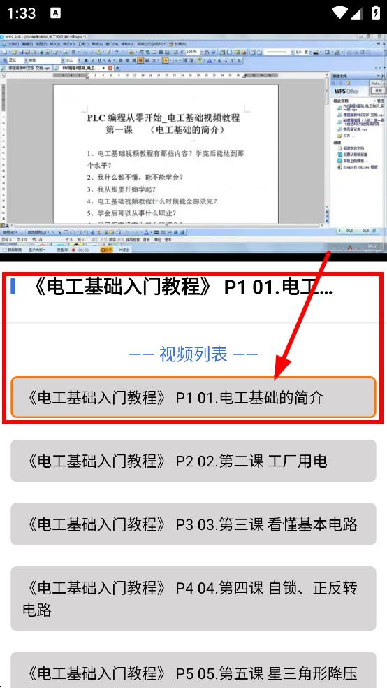 3在电工基础全集的视频列表页面,找到并点击标题为“电工基础入门教程P101.电工基础的简介”的视频,即可开启该部分内容的学习。