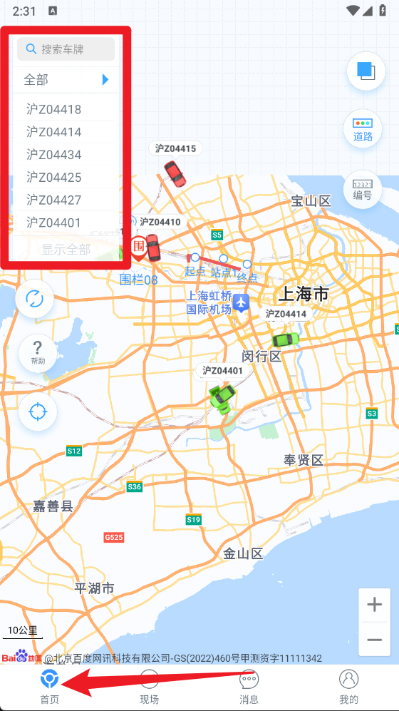 3、在首页模块,用户可以借助地图实时查看车辆的分布情况及对应的车牌信息,该模块还支持搜索和筛选功能,便于用户开展车辆定位与调度工作。