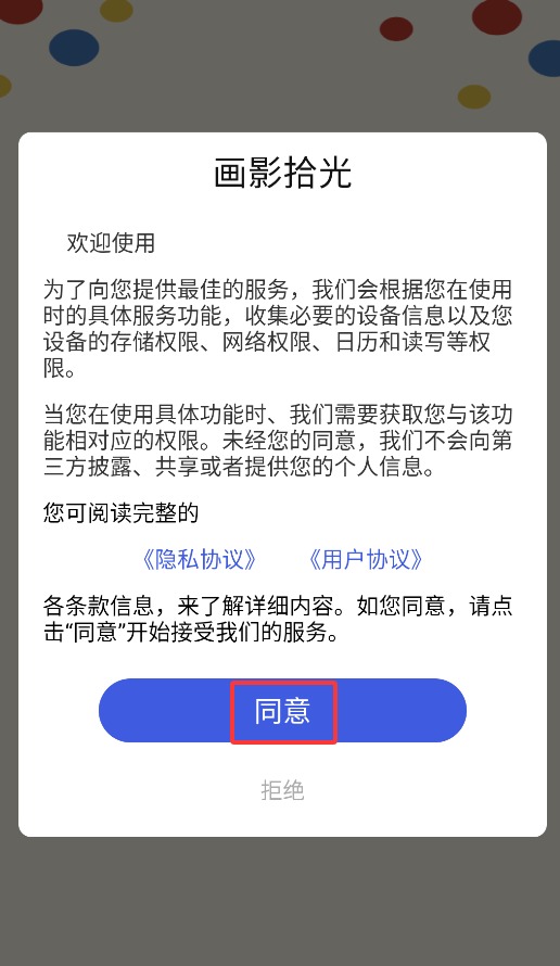 1、首次启动时需点击同意用户协议弹窗,方可进入主界面开始使用。