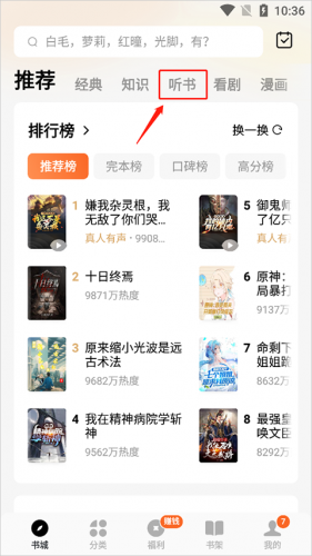 2、然后在“听书”界面就可以选择自己喜欢的书。