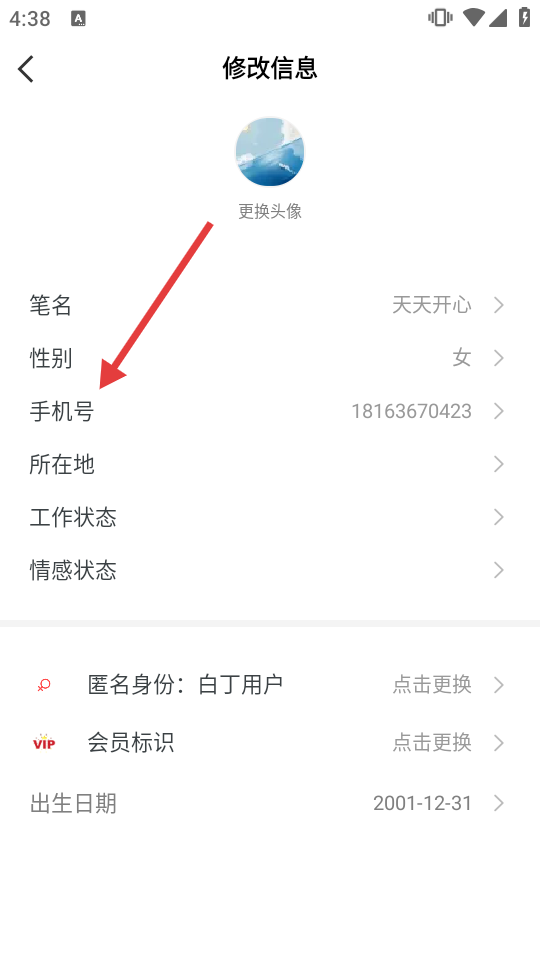 3、进入修改信息页面后,点击【手机号】选项,系统会弹出修改手机号的弹窗。