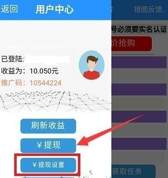进入【用户中心】页面可查看收益明细,账户余额达到2元后即可提交支付宝提现申请。