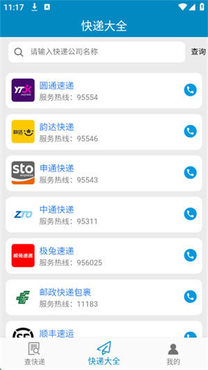 4若想查找特定快递公司,还能通过快递大全页面,输入该公司的名称来进行检索。