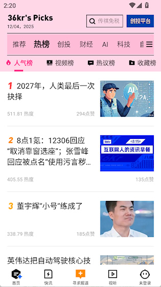 36氪是一款专注于新经济领域的商业资讯应用,内容覆盖科技、创投、消费、职场等多个方向,为读者提供前沿、及时的商业新闻与行业分析,设有多个特色栏目,帮助用户系统了解行业趋势,适合对商业世界保持高度关注的人群。