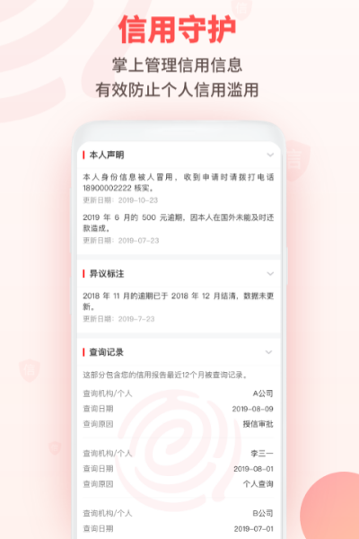 征信管理: 守护征信记录,做好征信管理,畅享信用生活赋予的征信服务便利。