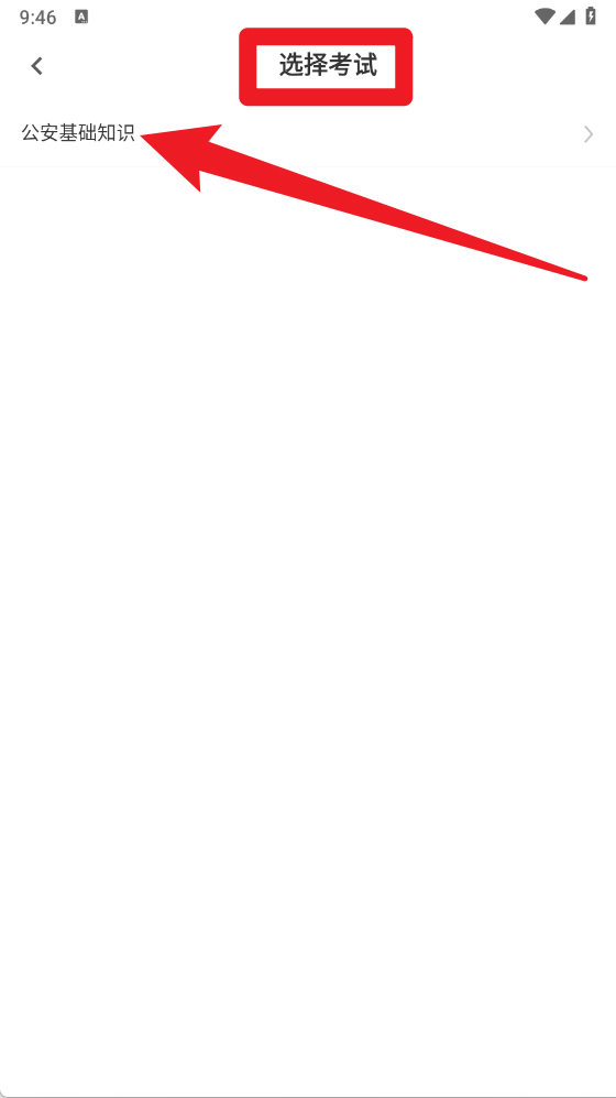 2、在考试选择页面,用户能够挑选公安基础知识等科目,进而进入对应的考试题库。