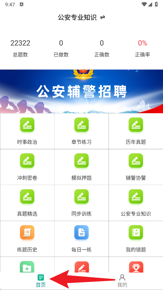 3、点击“公安专业知识”选项,即可进入对应的专项练习板块,开展题目训练。