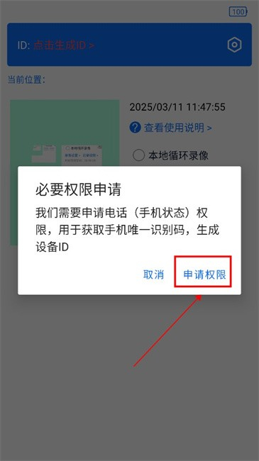 5、开启各项权限后点击上方的“点击生成ID”