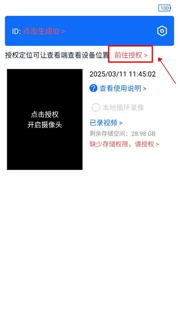 2、点击进入采集端操作页面,点击“前往授权”以获取位置信息,从而快速查看设备位置。