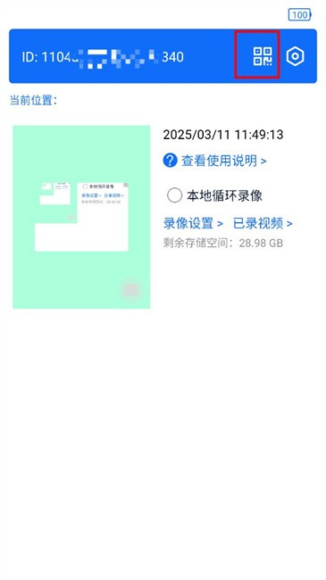 7、完成设备ID生成后,顶部标题栏会出现二维码图标