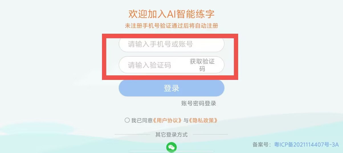 2、输入手机号或账号,输入验证码。