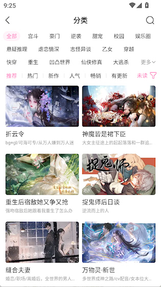 2、题材覆盖丰富多元:涵盖校园恋爱、古风权谋、科幻冒险等多种主题,能够满足不同兴趣读者的阅读喜好。