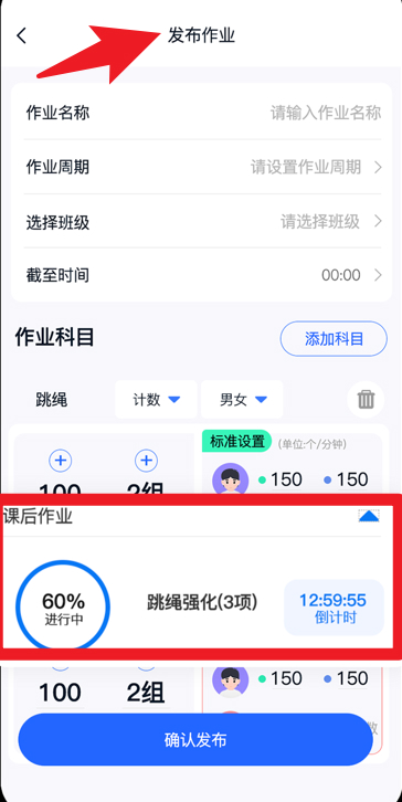 1、在作业发布界面,教师能够依据班级的实际状况,安排多种类型的课后作业,系统会主动对完成进度进行统计并显示倒计时,助力教师实现高效的作业管理。
