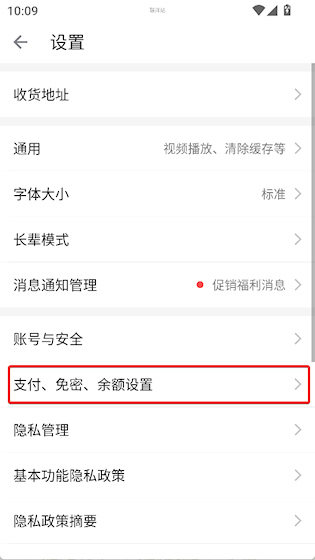 3、点击【支付、免密、余额设置】进行设置